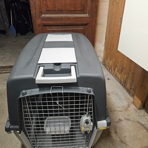 Så og si ikke brukt hundebur selges billig. Tenkte å bruke det hjemme og i bilen, men vi har en omplasseringshund som vi aldri klarte å lære å like buret. Praktisk bærehåndtak og nyvasket.