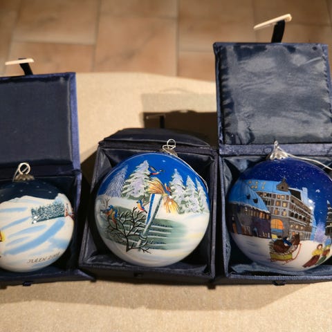 Store julekuler fra Perfect Home, en fra 2002 og en fra 2003. Begge kulene er hele og uten skader. Kulene kommer i originalboksen. Kulene selges for 150 per stykk.