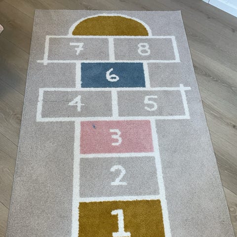 Alice & Fox barn teppe med hoppelek mønster i nøytral farge. Passer til barnerom eller lekeområde. Materialet er mykt og egnet for barn.kan vaskes 40 grader 100%bomull. Teppe