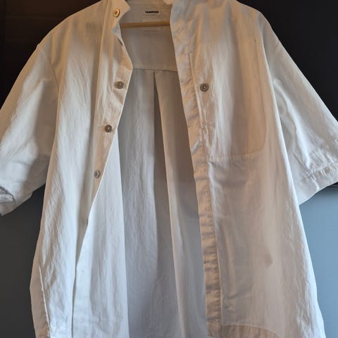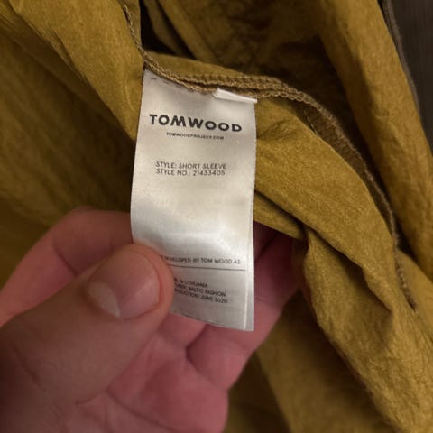 Selger en klassisk sort skjorte fra Tom Wood. Tidløs modell med krage og knapper i front, samt usynlige lommer som gir et rent og minimalistisk uttrykk.