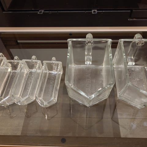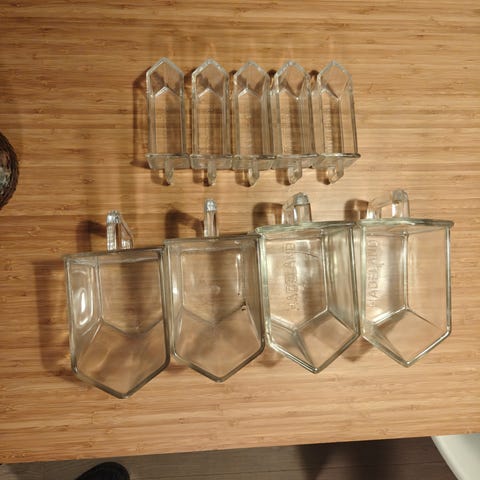 Skuffer til retro krydderhylle frå hadeland glass. Skikkelig fine, eit lite nag på to av de. Sjå på bildene.