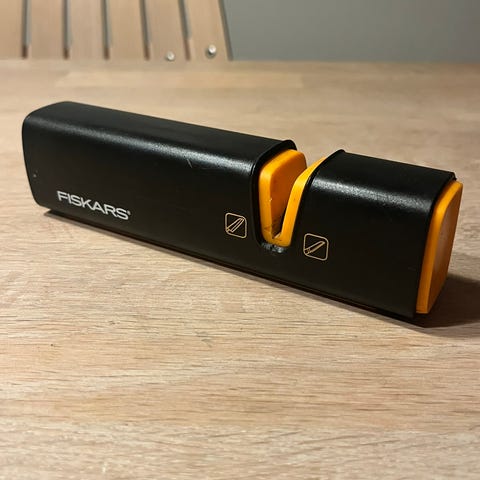 Knivsliper fra Fiskars. Aldri brukt eller pakket ut, siden vi har en annen sliper fra før