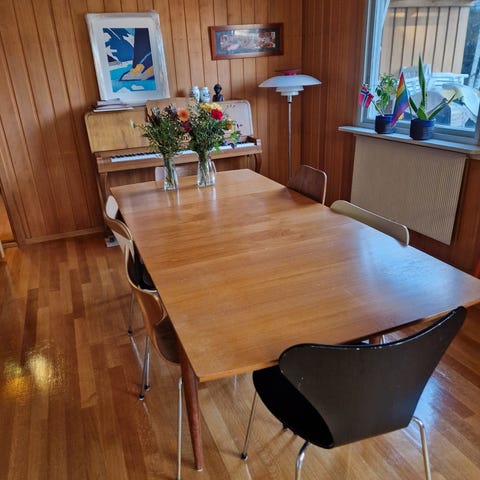 Spisebord i teak med svarte ben