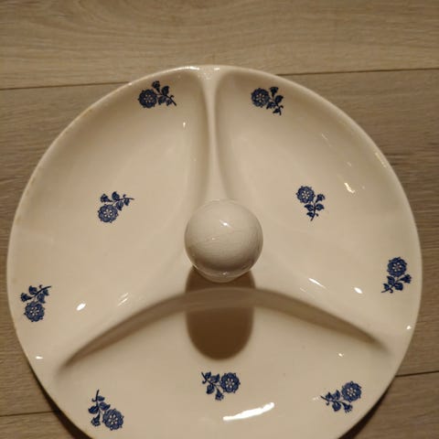 Serveringsfat ca.32 cm med gullkant. Ingen hakk, og ingen krakelering. Tydelig mønster.