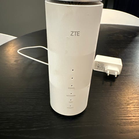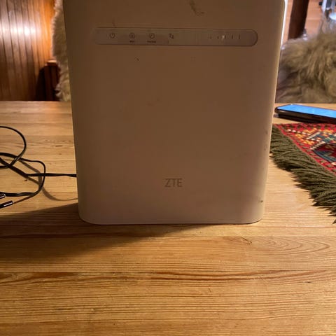 ZTE MF286D Router trådløs 4G med støtte for 4G-nettverk. Enheten har flere LAN-porter og leveres med strømadapter og brukerveiledning.