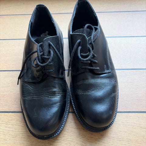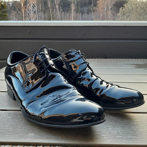 Skoene er i str 9,5, men jeg bruker 44 og disse skoene passer.