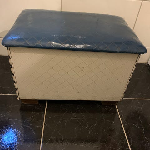 Dette er i utgangspunktet en gammel, solid stivogn/vaskevogn i stål som er funnet i en retrobutikk. Den har den helt rette industrielle patinaen med sjarmerende bruksspor som gir karakter.