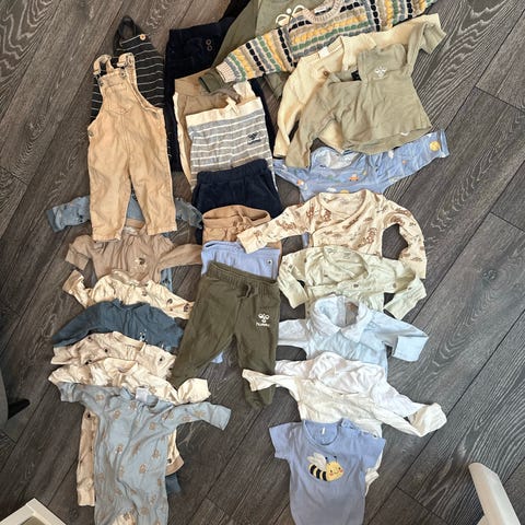 3 bodyer (1 i viscose), 2 gensere, 1 genser med glidelås, 1 tights og 4 bukser.