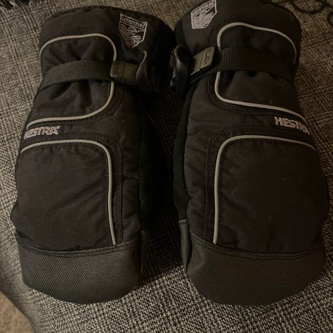 Vottene har justerbar stropp og forsterkninger på håndflaten. Passer til utendørs bruk i kaldt vær.