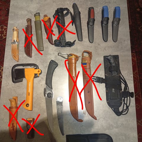 Militært utstyr. Sekk. Koke/spisekarr Teltduk. Enkeltmannspakke. Feltspade. Feltstøvler str. 10. Barduner. Påler. Stridsbelte. Ryggsekk. Reimer. Pussesaker. Reip. Votter. Overtrekksvott. Barduner. Snubletråd. Hals. Russerlue. Flaske til rødsprit. Feltflaske. Selges samlet. Åpen for bud.