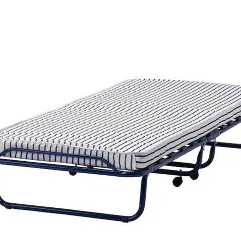 Sengen har en ramme av metall med hjul for enkel flytting, og madrassen er laget med memory foam for ekstra komfort. Passer til bruk som ekstra seng ved behov. Nesten ikke brukt.