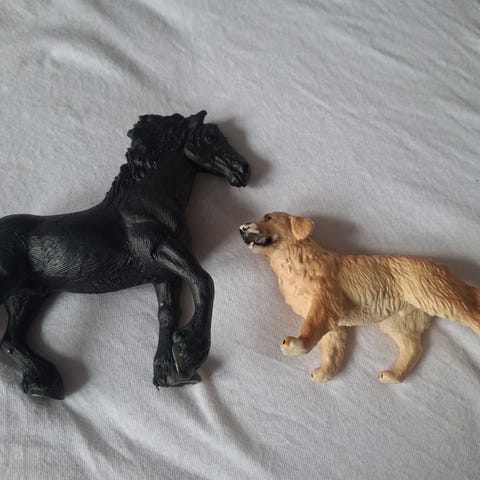Fin Schleich heste og hund. Nesten ubrukt som nytt.