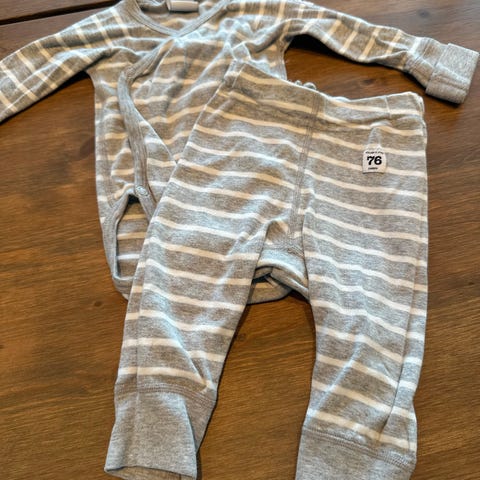 Flott sett med body og bukse fra Polarn O Pyret, størrelse 56. Utrolig god kvalitet.