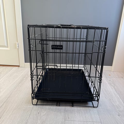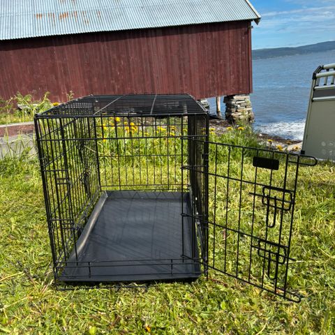 Plast med ventilasjon på sidene og metallgitter-dør. Enkelt å åpne/lukke. Bærehåndtak på toppen, samt fester for evt bærerem .