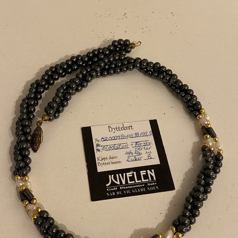 Vintage halskjede fra 80-tallet i off white og gullfarge.