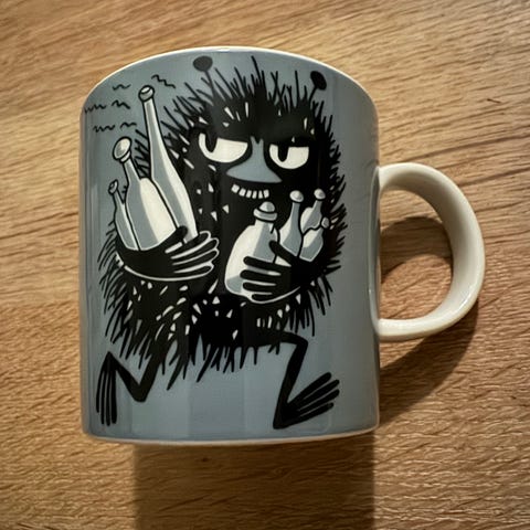 Ny utgått Mummikopp «Aprikos Mummimamma» (2014-2020) med etiketter