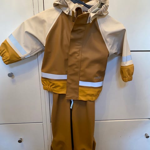Gul regndress fra Reflex uten for. Litt slitasje nederst på ermer/bein, se bilder. Fotstrikker er hele.