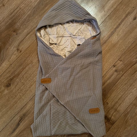 Litt eldre modell Voksi sovepose. Veldig varm. Passer til vogn og pulk. Den har hull for sikkerhetsbelter i vognen. Veldig fin å ha for soving i barnehage!