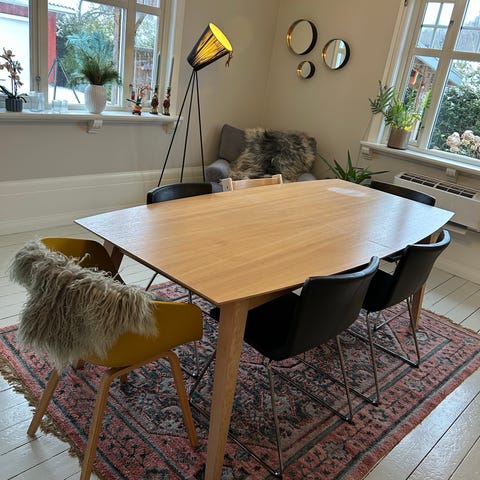 Søkeord: , spisegruppe, spisestuesett, bord og 4 stoler, spisestuebord, kjøkkenbord, 150x80 cm, 150 x 80, spisebord 150, eikefiner, hvitoljet eik, heltre eik, massiv eik, eikeben, lys eik, natur eik, treben, skandinavisk design, nordisk stil, moderne, minimalistisk, tidløs, avrundede hjørner, rektangulært bord, stabilt, solid, pent brukt, god stand, nylig omtrukket, nytrukket, omtrukket, nytt trekk, møbelstoff, stofftrekk, fargerike stoler, grønn stol, oransje stol, lilla stol, burgunder stol, komfortabel, ergonomisk rygg, spiseplass 4–6, passer til leilighet, passer til hytte, lett å vedlikeholde, interiør, scandi, designbord, designstoler, oak dining table, oak chairs.