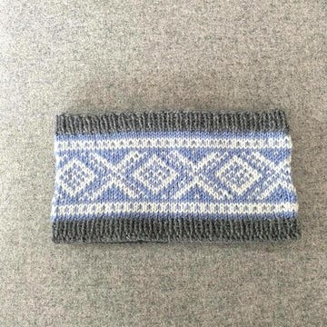 Hjemmestrikket pannebånd med Mariusmønster. Garn av merinoull.