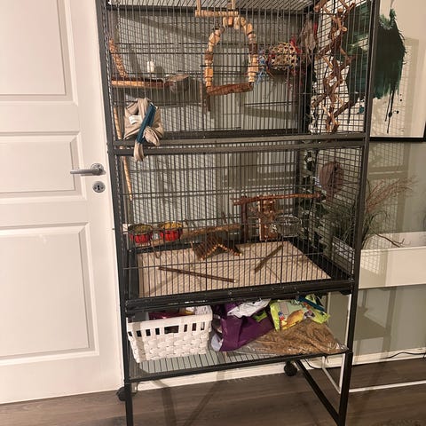 Selges med komplett bur og utstyr til noen som kan ta godt vare på dem.