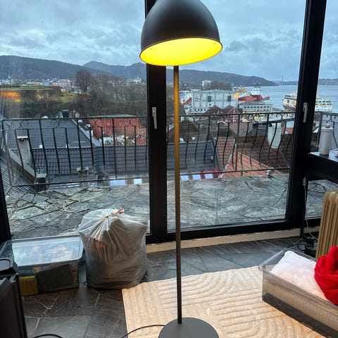 Blå/ turkis stålampe fra IKEA. Jeg kjøpte den brukt for 2 år siden, men den har blitt brukt som dekor og ikke belysning, så jeg har ikke testet den selv. Forrige eier opplyste at den bruker stor lyspære, led, E27. Lampen må hentes på Nordnes.