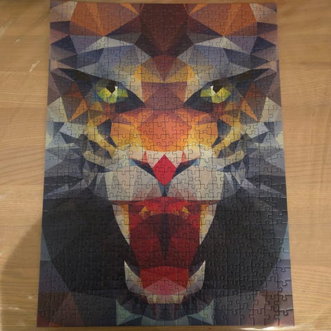 Ravensburger Puzzle med 500 biter som danner et bilde av en fargerik øgle.
