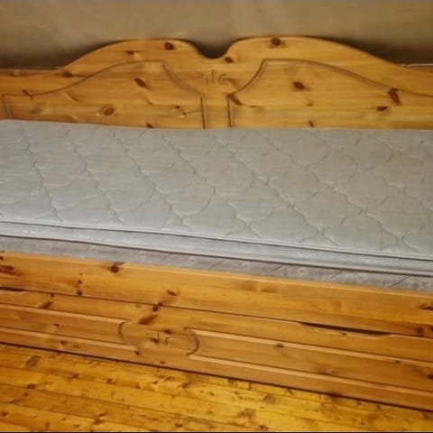 Må hentes i Sandefjord. Senga er nå skrudd fra hverandre, så den kan fraktes «flatpakket».