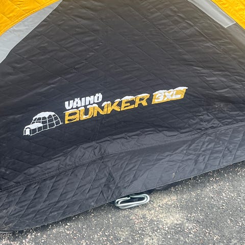 Typisk for isfiske tar man teltets gulv ut og med det isolerte gulvunderlaget, så er det 2 hull med flapper m/ borrelås for ishullene. (se bilde 2, fra nettside)