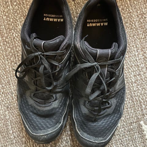 Skoene er kun prøvd på innendørs, og selges med merkelapper på.