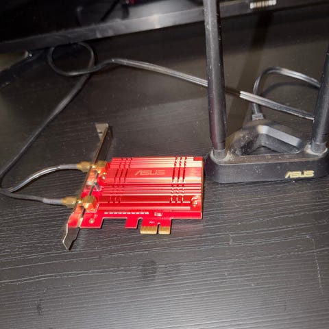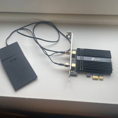 PCIe adapter for WiFi. Fungerer svært godt for å koble din stasjonære PC på trådløsnett.