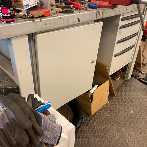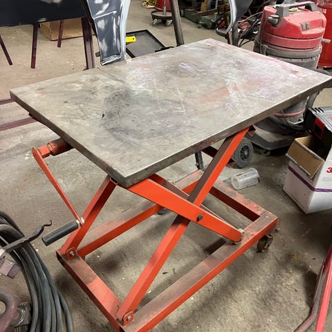 Arbeidsbord med hjul og hylle