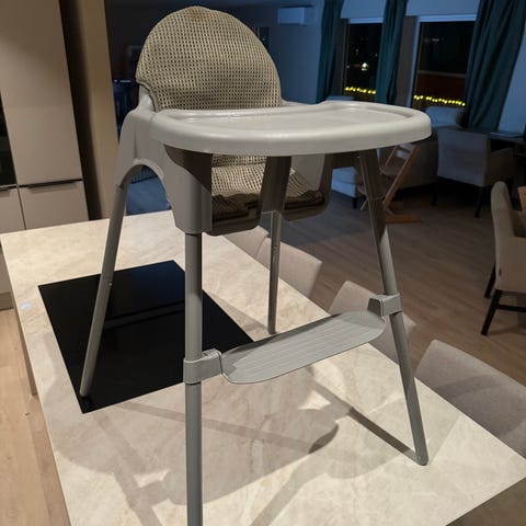 IKEA høy barnestol med bord ,designet for barn med fokus på funksjonalitet og sikkerhet. Stolen har et enkelt og praktisk design - som passer små barn.