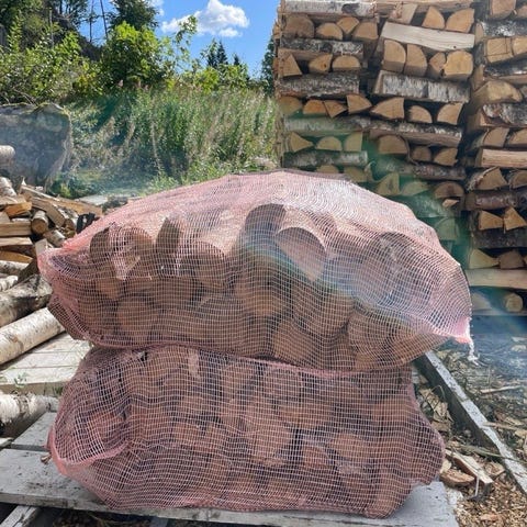 Tørr fin bjørkeved 60 liter sekker 30 cm