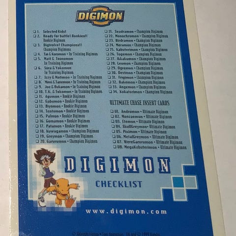 Digimon Animated Series 1 - Checklist - Upper Deck 2000