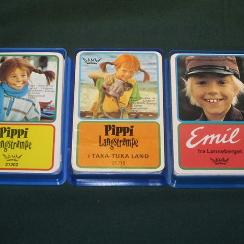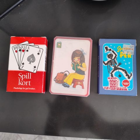 Kort med illustrasjoner på kortene. Inneholder ulike figurer og scener. 4 ulike spill. Det mangler en del kort