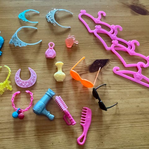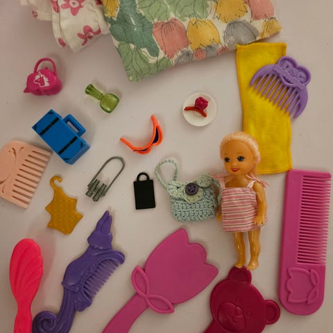 Barbie dukke med baby med div tilbehør. 100 kr. Hentes i Løten eller sendes.