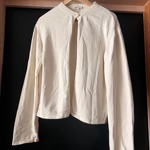 Selger cardiganen da den aldri blir brukt. Litt skrukkete på bildet, men det er bare å stryke/ dampe den.
