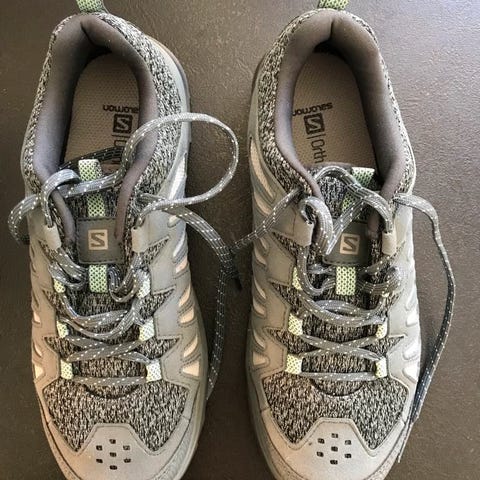 Salomon tursko i størrelse 42 2/3 selges. Er i god stand, litt skitne da de har vært i bruk i mange år. Veldig behagelige sko som passer både til moderate turer i skog og fjell, samt toppturer i steinete terreng