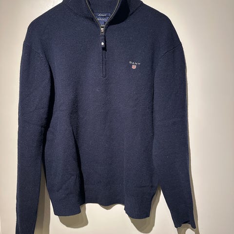 GANT Fine Lambswool cardigan i svart farge, størrelse L. Laget av ullmateriale, designet for herre.