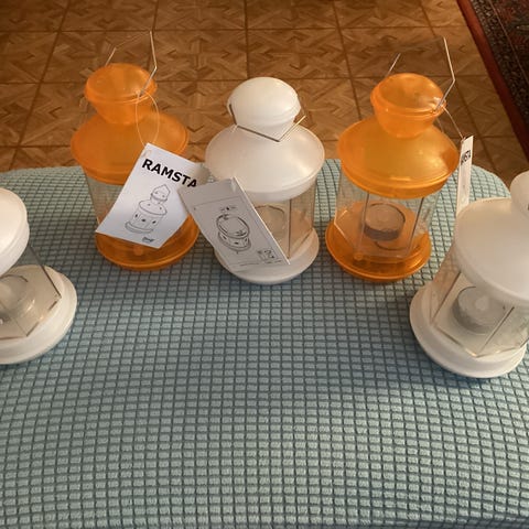 IKEA ROTERA lykt med en høyde på 21 cm. Lykt i pulver lakkert, matt blå.