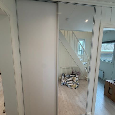 Dørene har vært i bruk, men er i god stand. Speildørene er hele og pene. Normale bruksspor kan forekomme.