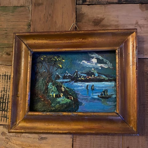Selger to flotte håndmalte bilder på porselen av brukskunstneren Edel H. Bremnes.