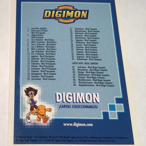Digimon Animated Series 1 - Checklist - Upper Deck 1999