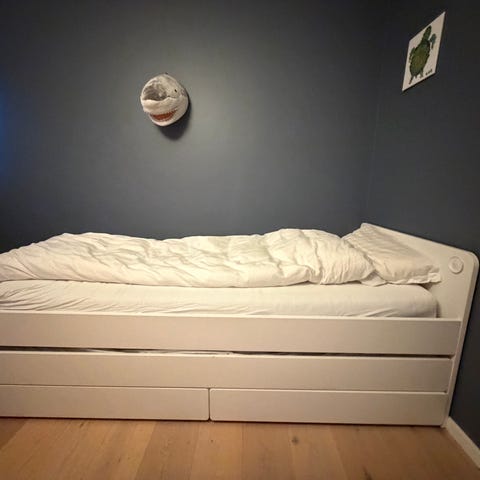 SLÄKT Seng m oppbev + ribbebunn, hvit, 90x200 cm