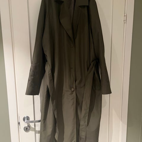 Tidløs jakke med klassisk krage og revers, dobbeltreiste knapper og sidelommer. Jakken har en normal passform med avtakbart belte i midjen og er laget i et varmt og behagelig materiale med 10 % ull.
