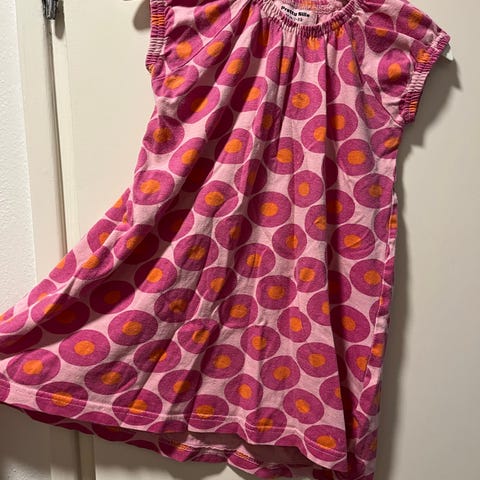 Søt kjole med enhjørning i størrelse 98. Godt brukt og har noen flekker, men håper allikevel noen kan få nytte av denne veldig fine kjolen :)