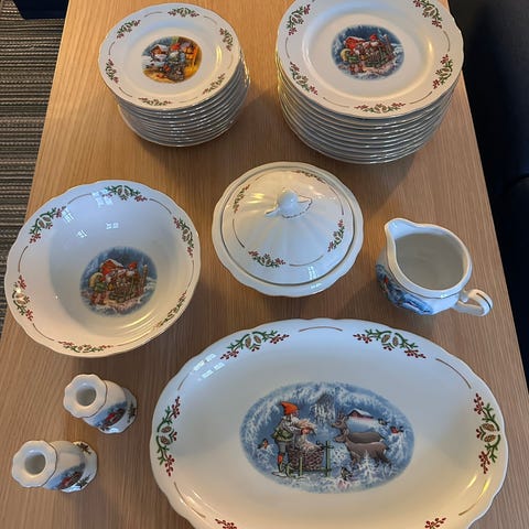 Gammeldags Jul fra Firkløveren. Middagstallerken 27 cm og frokostasjett 21 cm. 2 kuverter.