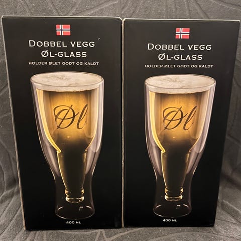 Flotte glass til øl eller annen drikke. Brukt få ganger. Vasket opp for hånd. Ca 16,5cm høye. 8cm åpn.