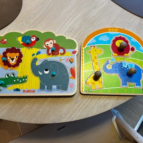 Dette puslespillet i tre fra Djeco er designet for barn fra 12 måneder og oppover og er et ideelt første puslespill. Dette femdelte settet består av tykke, gripevennlige trebrikker formet som kjente dyr - katt, hund, kanin, mus og skilpadde - illustrert i en myk, beroligende fargepalett. Denne taktile puslespillplaten med opphøyde spor støtter finmotorisk utvikling, hånd-øye-koordinasjon og tidlig formgjenkjenning, samtidig som den oppmuntrer til selvstendig lek. Det slitesterke, glattbehandlede treverket gir en førsteklasses følelse og er en tiltalende gave og et enkelt tilskudd til ethvert lekerom.